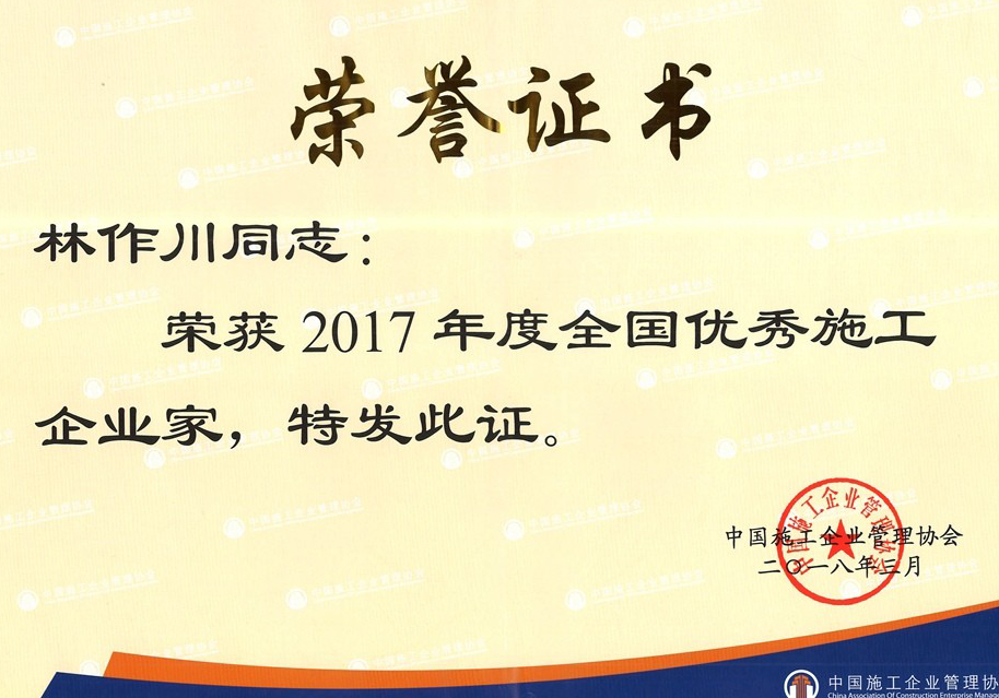本站訊2018年4月18日,在合肥召開的中國施工企業管理協會第33次年會暨2018年工程建設行業發展論壇上,曙光建設有限公司董事長林作川榮獲“2017年度全國優秀施工企業家”榮譽稱號并受到表彰。曙光建設有限公司自曙光控股集團于2013年9月改制分立新成立以來,面對新常態下多重不利因素的挑戰,林作川董事長堅持真抓實干,帶...